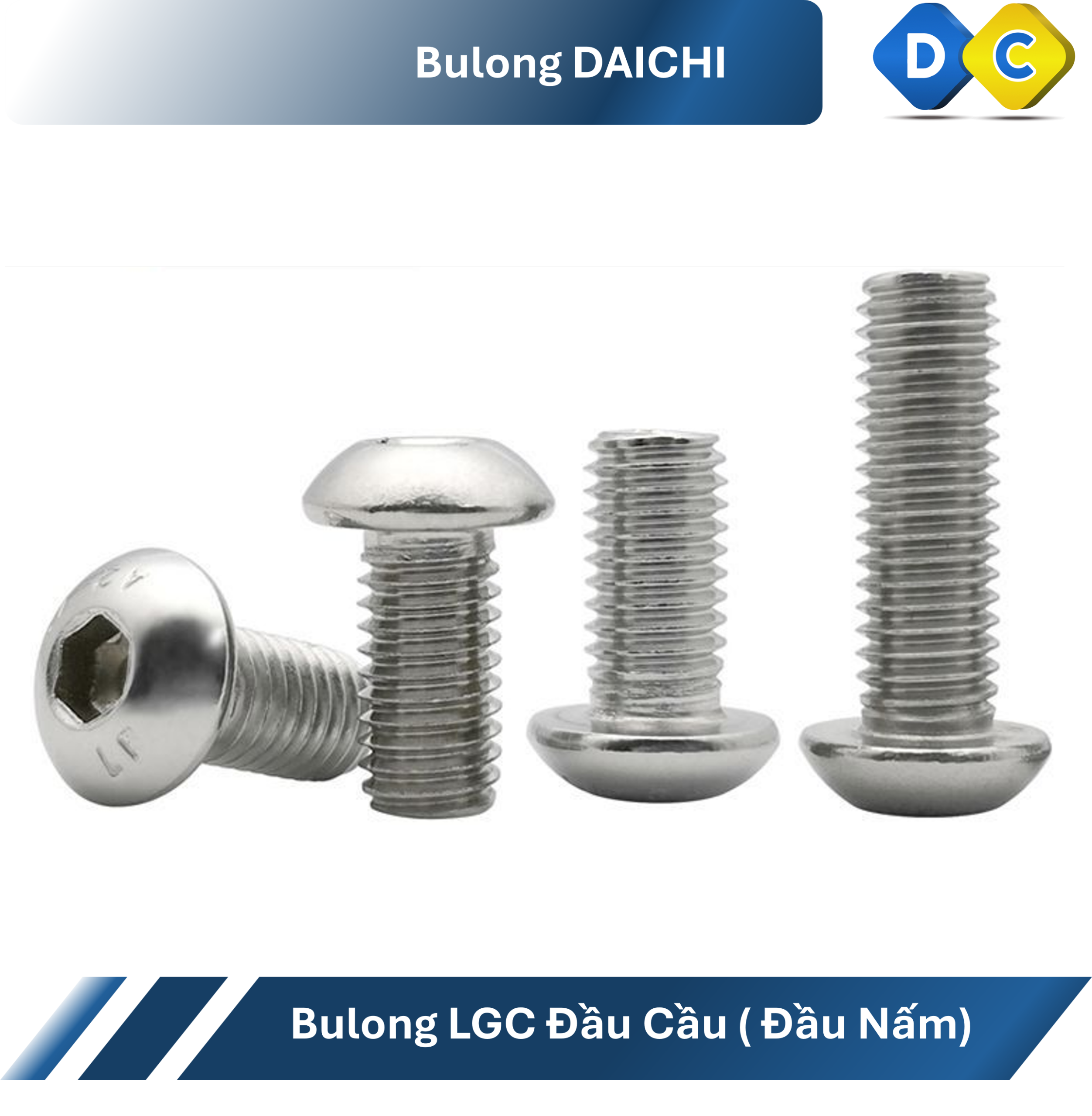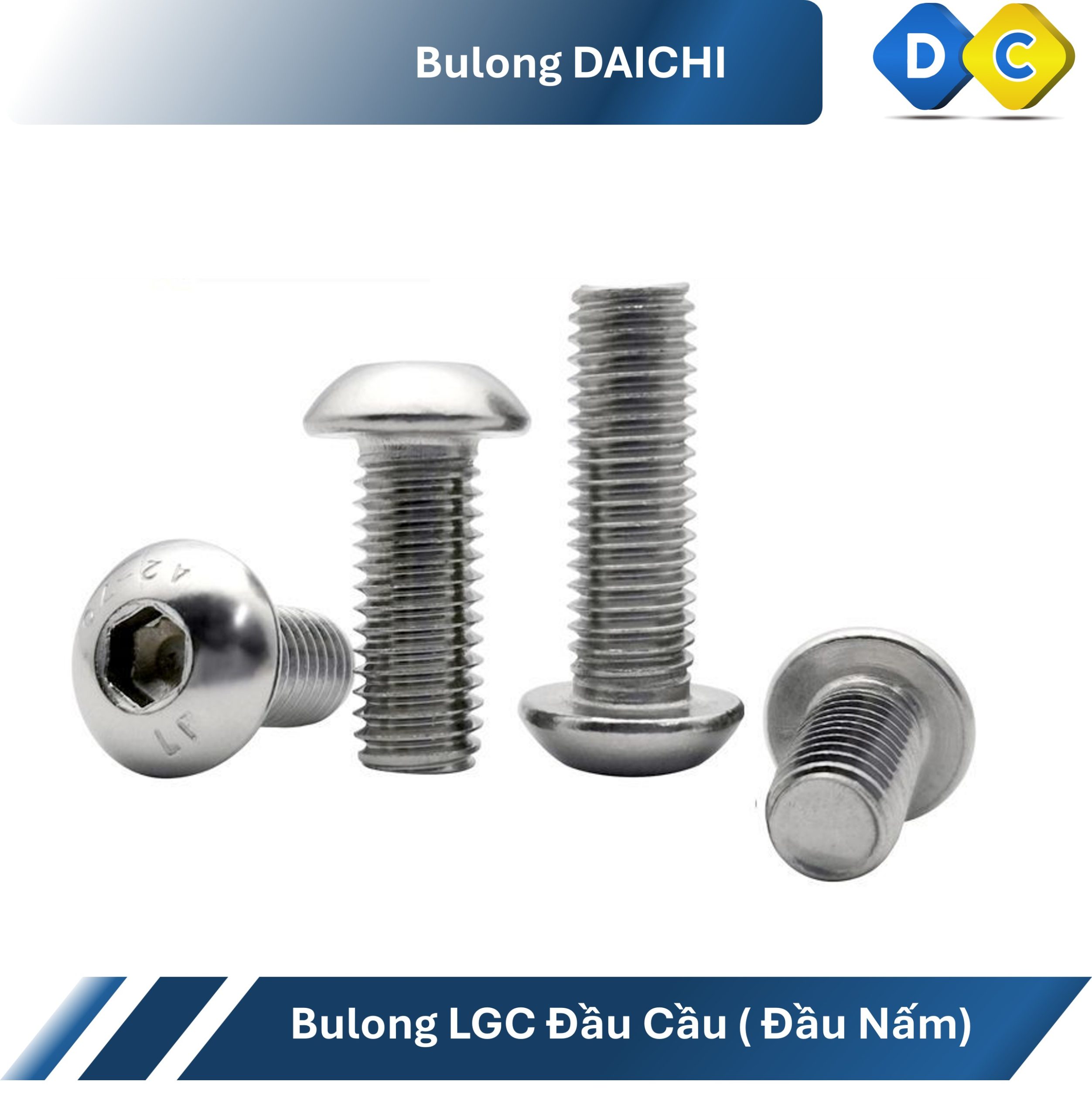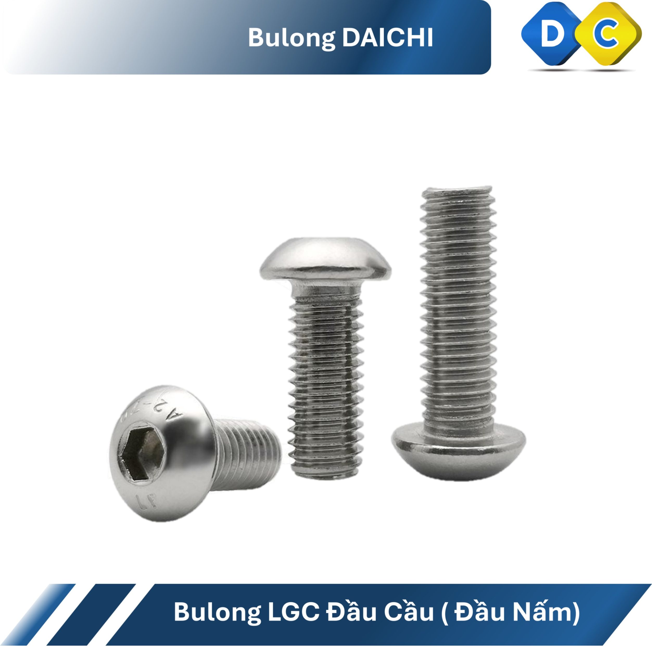 Bulong lục giác chìm đầu cầu DIN 7380 inox 201 là dòng bu lông được thiết kế với phần đầu dạng cầu (đầu tròn), kết hợp với lỗ lục giác chìm giúp tăng tính thẩm mỹ, độ an toàn và khả năng lắp đặt trong nhiều điều kiện khác nhau. Đây là sản phẩm được sử dụng phổ biến trong cơ khí, nội thất, thiết bị điện và các công trình yêu cầu độ hoàn thiện cao.